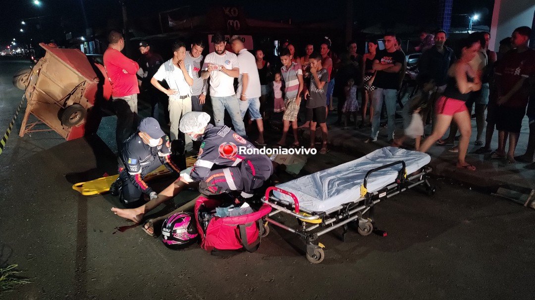 Ocorrido na noite desta quarta-feira (28) um grave acidente deixou um motociclista com fratura exposta na perna no cruzamento da Rua Plácido de Castro com Jaqueline Ferri, bairro JK, zona Leste de Porto Velho (RO).