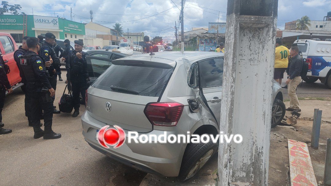 Devido a força da batida, o carro Polo ainda foi arrastado contra um poste, mas o motorista não saiu ferido