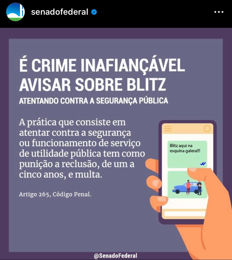 A ideia do DETRAN é despistar os grupos de WhatsApp onde criminosos costumam informar os locais onde estão acontecendo as ações de fiscalização, além disso a entidade estuda meios de identificar e responsabilizar as pessoas que através de redes sociais atrapalham as ações do Estado, incorrendo no crime previsto 265 do Código Penal: