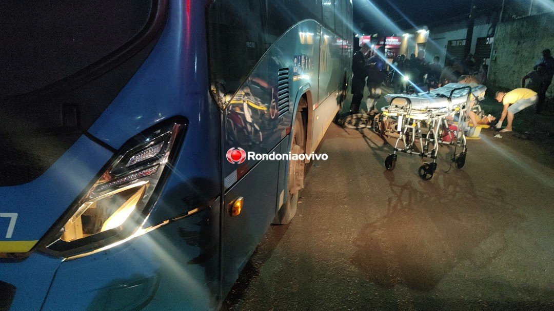 Um casal de moto ficou gravemente ferido após violenta colisão frontal com um ônibus na Rua Joaquim da Rocha, bairro Castanheira, na zona Sul de Porto Velho (RO) na noite deste sábado (08).