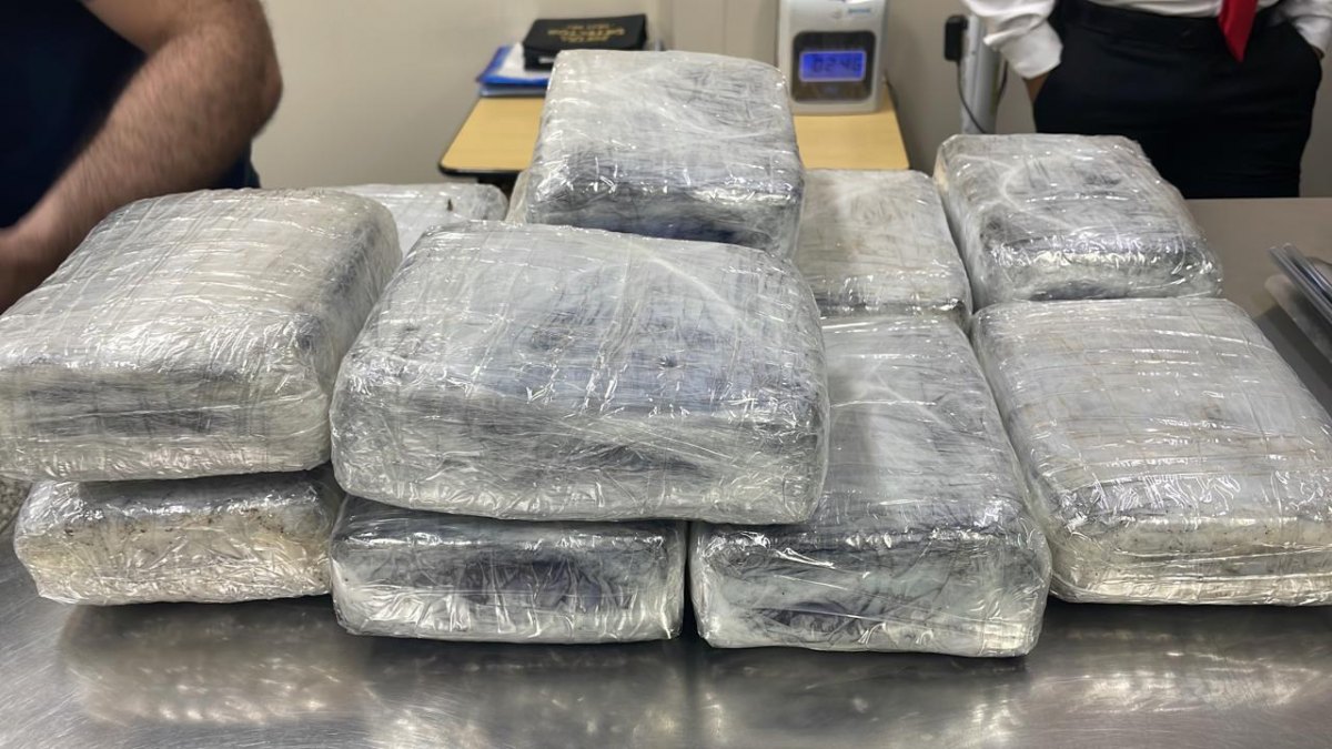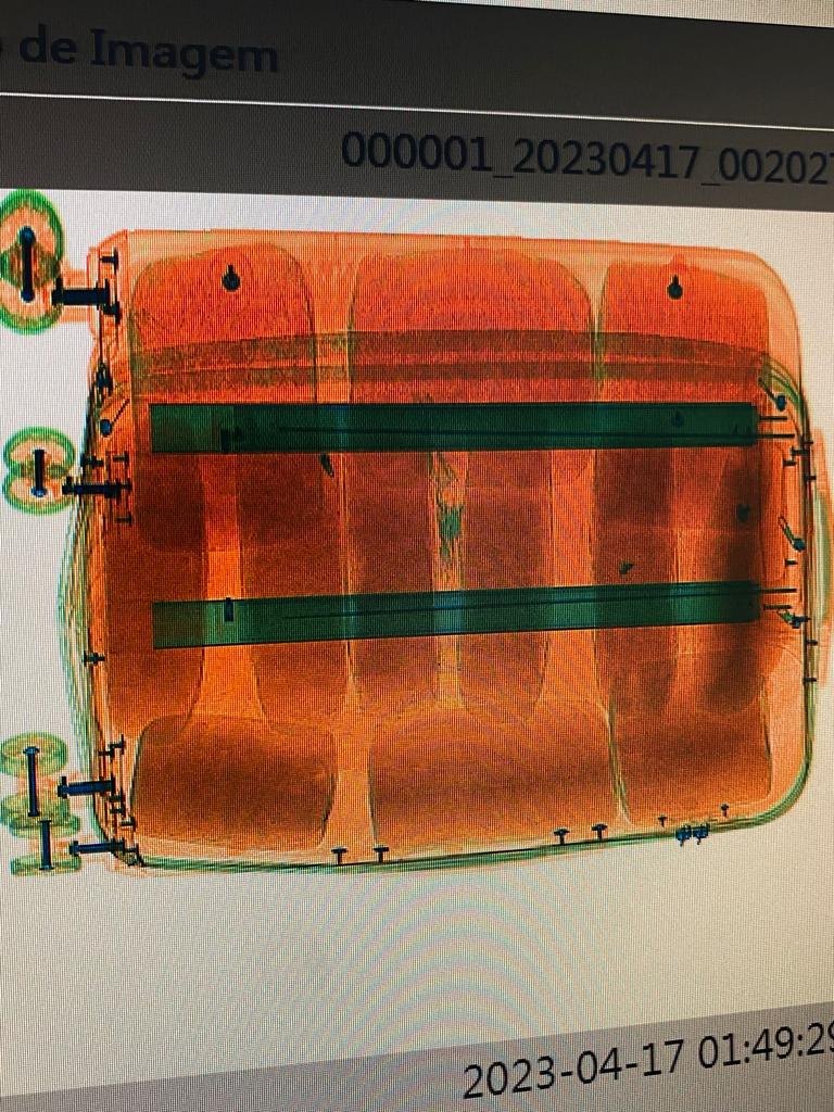Em inspeção de rotina e contando com auxílio do aparelho raio-x, após diligências nas bagagens despachadas, foram encontrados em uma mala doze pacotes de substância entorpecente do tipo “skunk” conhecida como “super maconha”.