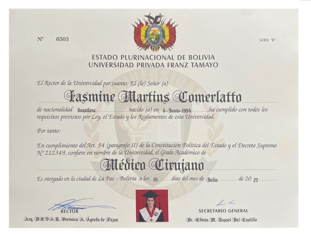 Entre os itens levados, estava uma mala preta de viagem que continha o diploma de medicina de Iasmine, emitido por uma universidade em Cochabamba. A situação se tornou ainda mais complicada, uma vez que Iasmine recentemente conseguiu passar no exame de revalidação de diploma médico, conhecido como Revalida.