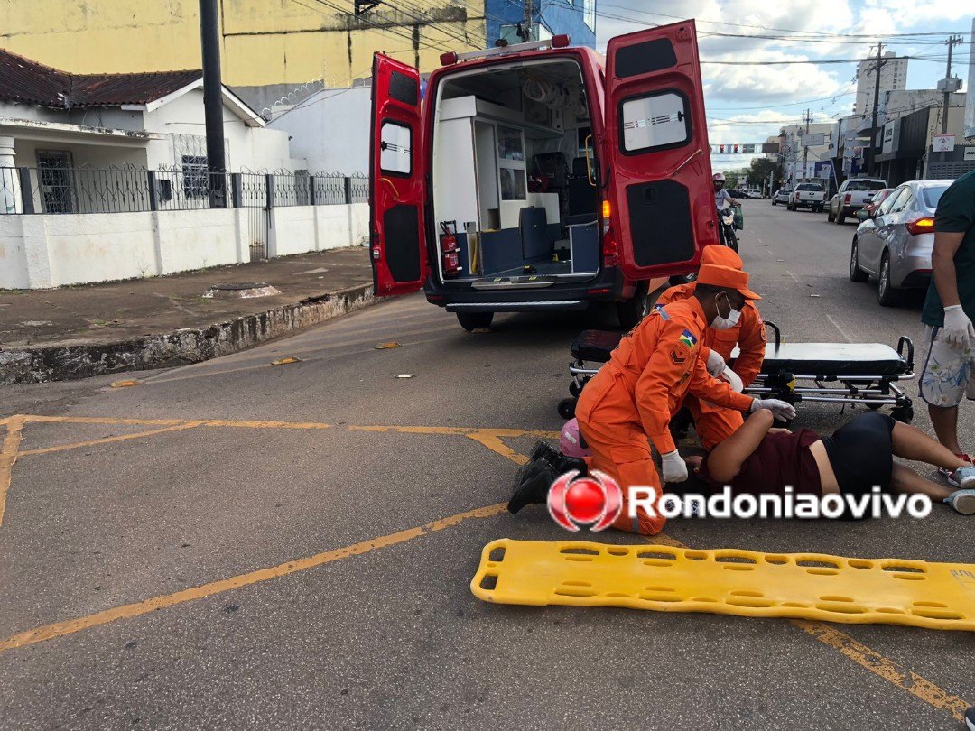 Uma motociclista ficou ferida e foi socorrida pelo Corpo de Bombeiros após colisão contra um carro na tarde deste sábado (17) na Avenida Carlos Gomes com Rua Joaquim Nabuco, na região Central de Porto Velho (RO).