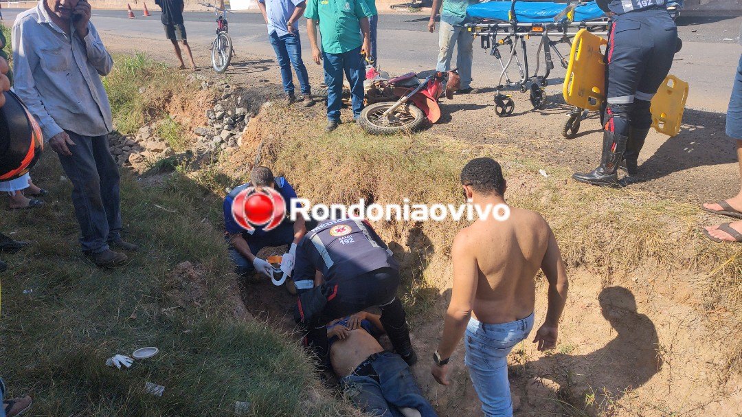 Com a forte batida, o motociclista foi parar dentro de uma vala feita para a drenagem de água na rodovia. A vítima em estado grave foi socorrida ao hospital João Paulo II em uma ambulância do Samu