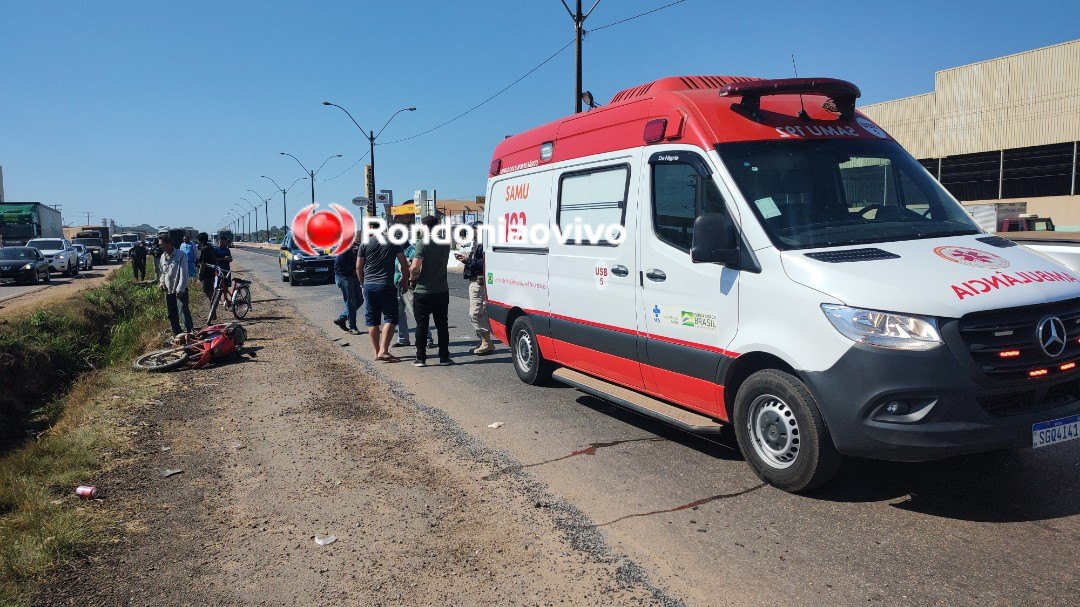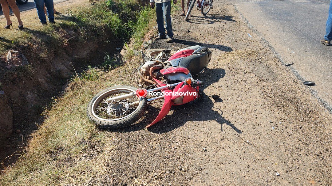 Um motociclista de aproximadamente 50 anos ficou em estado grave após ser atropelado por uma caminhonete e cair em uma vala às margens da BR-364, em frente ao posto de combustíveis Carga Pesada, em Porto Velho (RO).