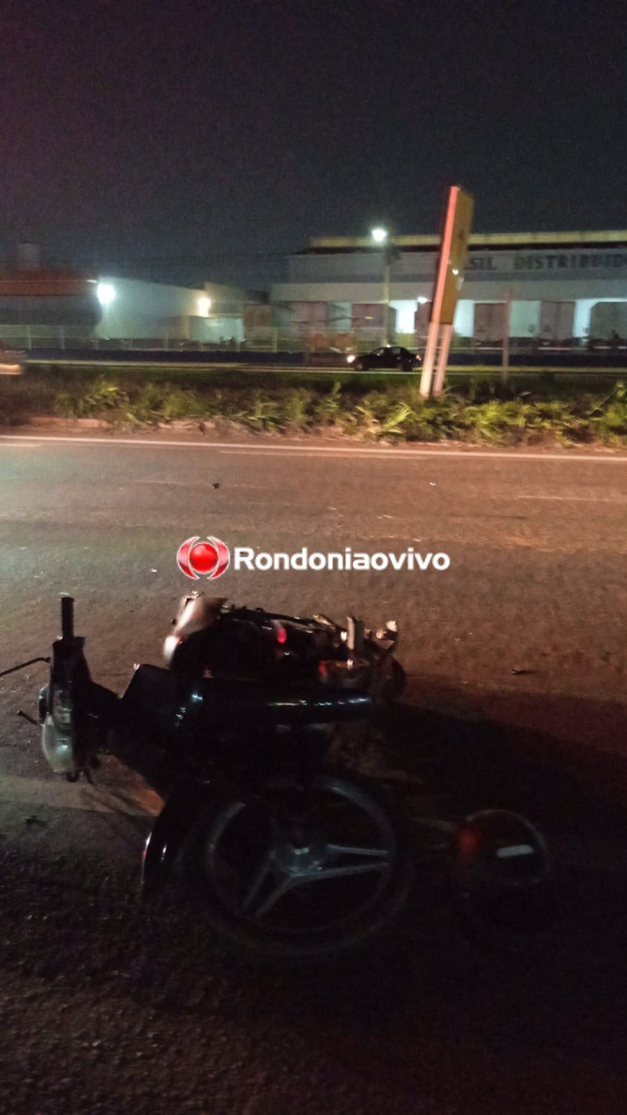 Uma violenta colisão entre duas motocicletas deixou dois homens bastante lesionados na noite desta sexta-feira (8) na BR-364, próximo a Estrada dos Japoneses, trecho urbano de Porto Velho (RO).