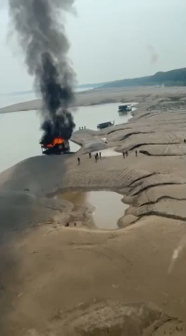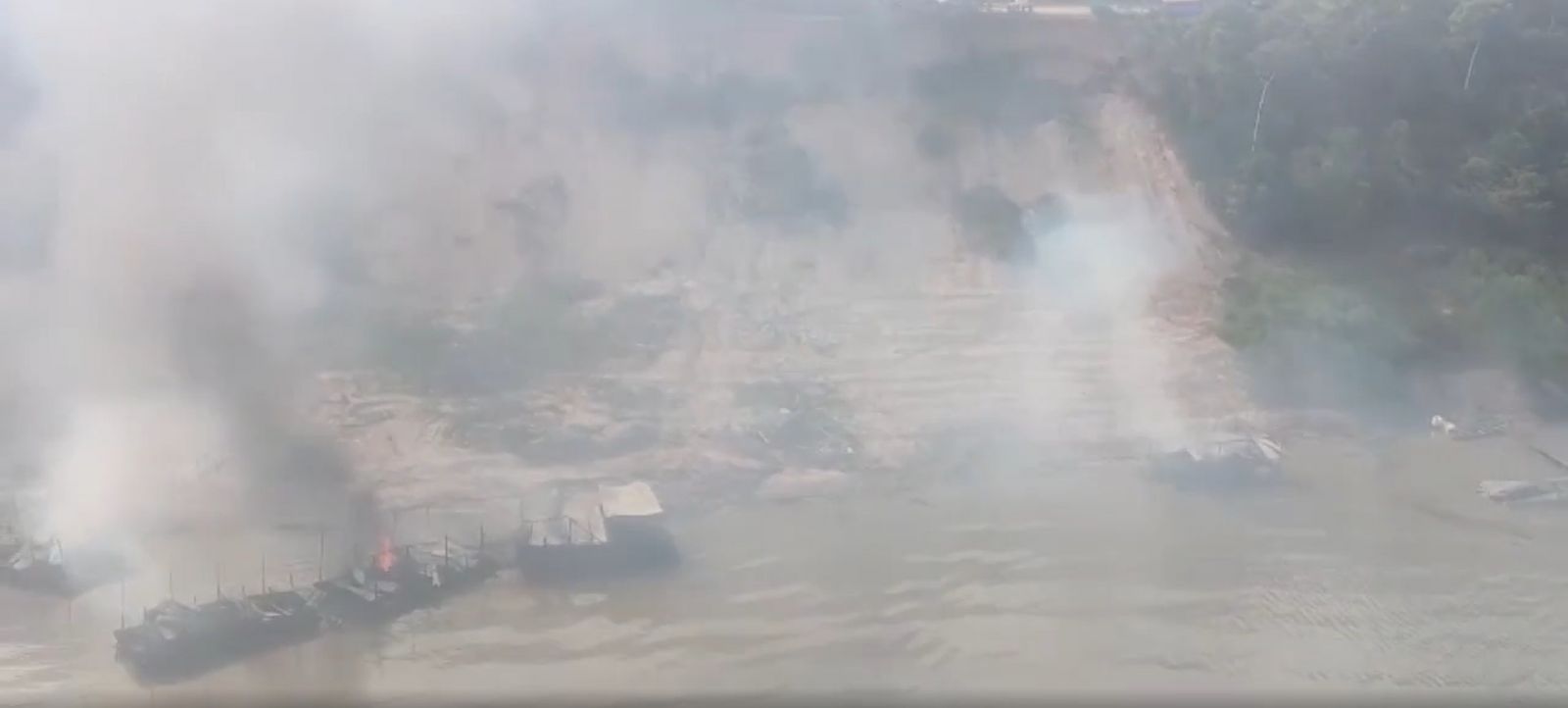 Os registros feitos durante a ação mostram as dragas sendo incendiadas e evidenciam o leito do Rio Madeira seco, com bancos de areia surgindo em várias localidades.