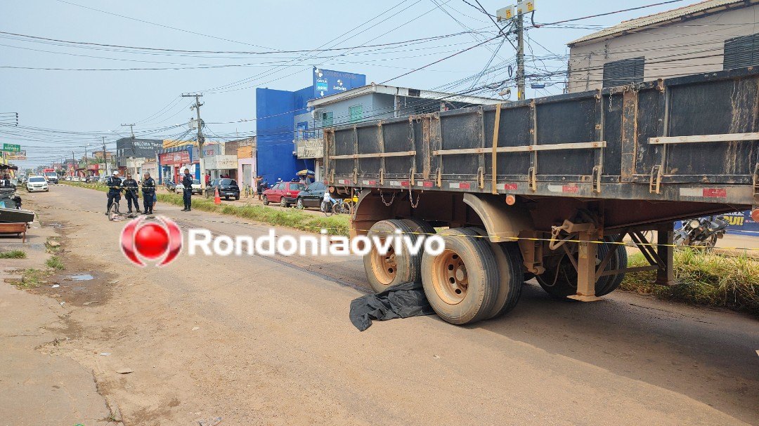 Testemunhas contaram que a mulher na bicicleta dela seguia sentido centro/bairro, quando ao desviar do reboque de uma moto que estava estacionado acabou sendo atingida por uma carreta que ia no mesmo sentido.