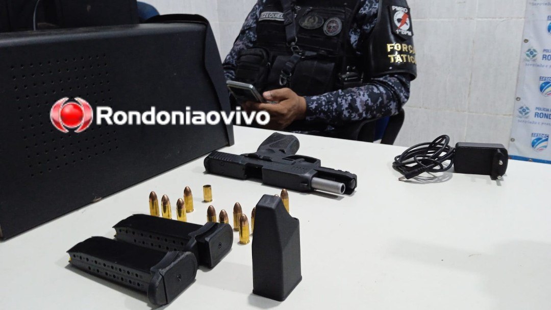 Os policiais verificaram que a pistola apreendida está cadastrada em nome de um outro apenado do regime aberto, condenado justamente por porte ilegal de arma.
