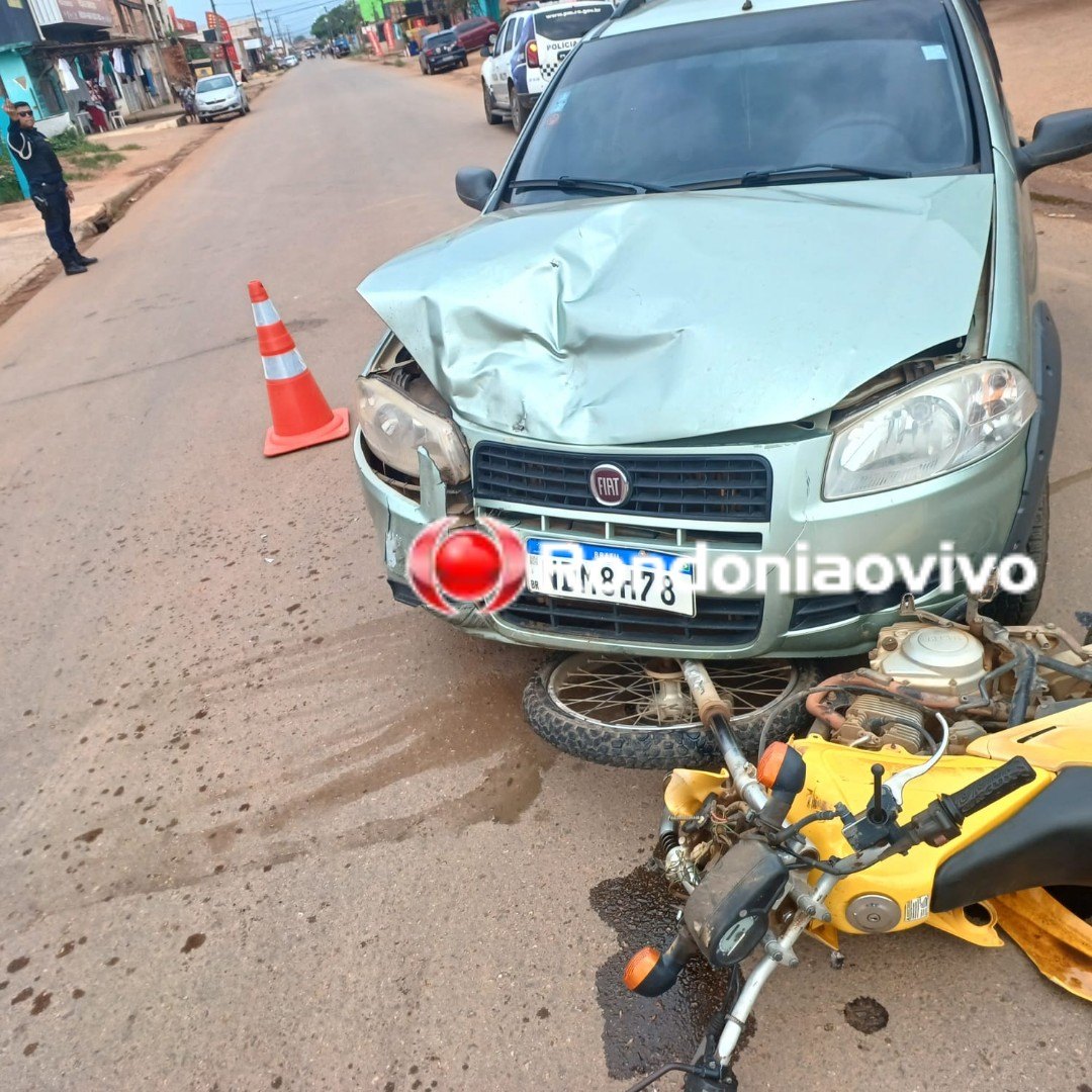 Imagens de câmera de monitoramento registraram a batida frontal entre um carro e uma motocicleta que deixou uma mulher em estado grave neste sábado (04) na Rua Benedito Inocêncio, bairro Três Marias, na zona Leste de Porto Velho (RO).