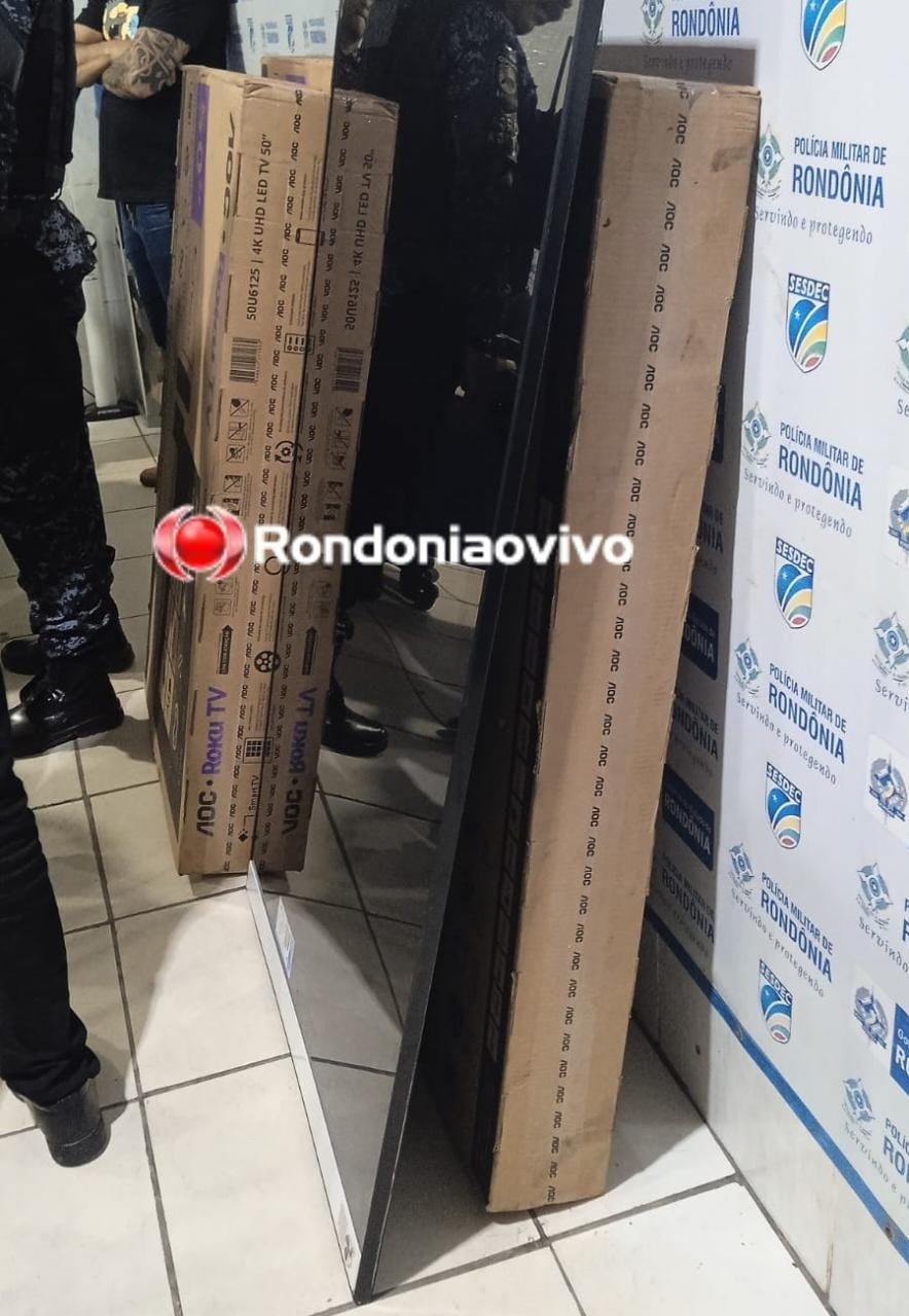 Quatro TV's que fazem parte das 500 que foram roubadas de uma embarcação no rio Madeira foram recuperadas pela Polícia Militar na noite de ontem (08) após abordagem que teve início no condomínio Orgulho do Madeira, na zona Leste de Porto Velho (RO). Dois acusados de 31 e 58 anos foram presos.