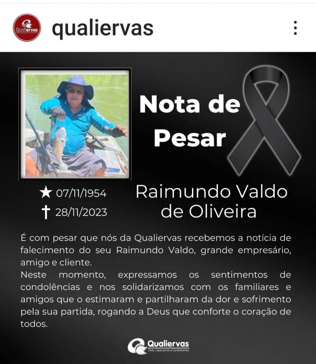 É com extremo pesar que o Rondoniaovivo lamenta a morte do senhor Raimundo Valdo de Oliveira, de 69 anos, recém-completados no último dia 07 de novembro.