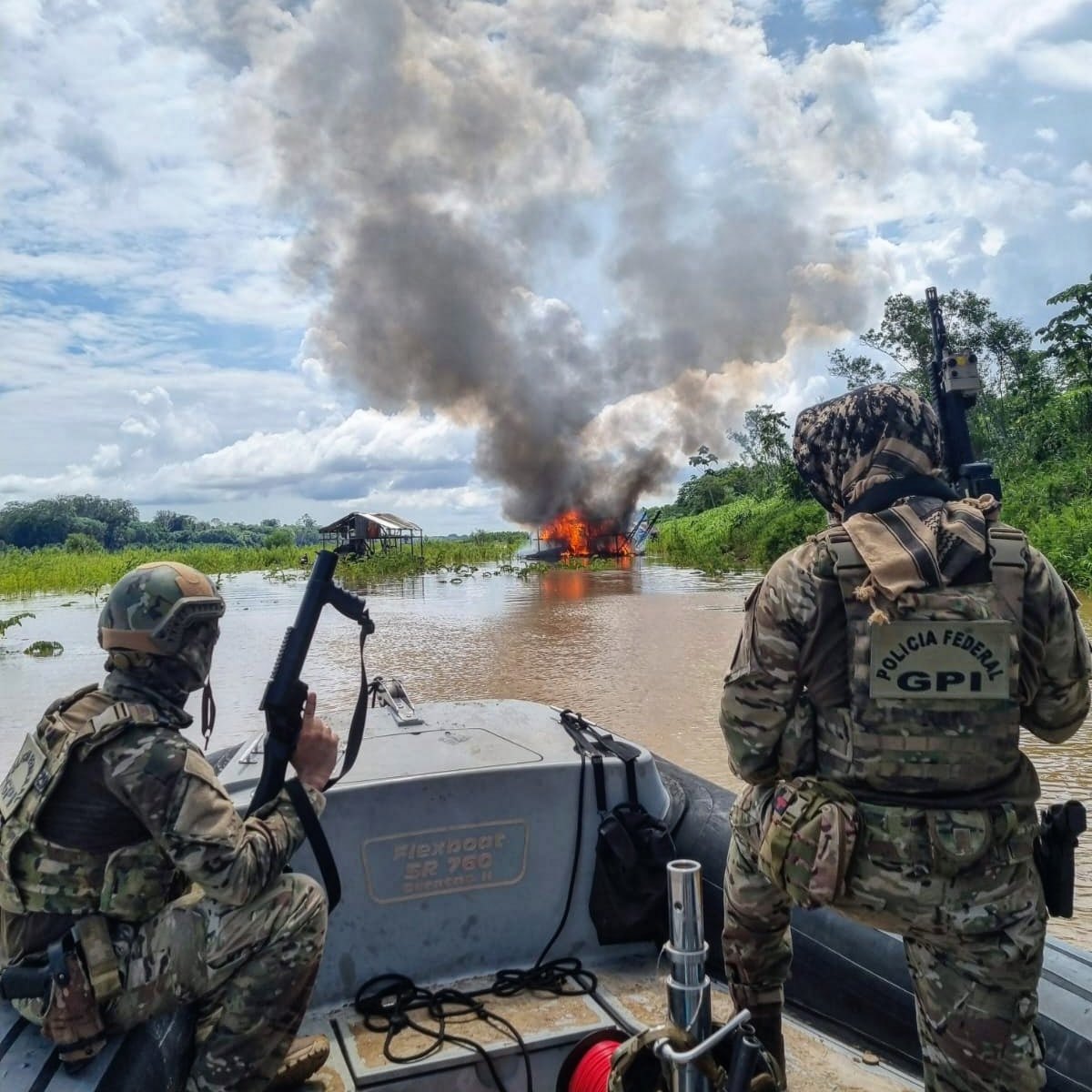 Durante o trabalho foram inutilizadas dez dragas que atuavam à margem da lei na extração de ouro
