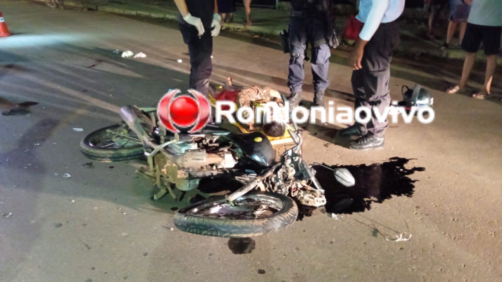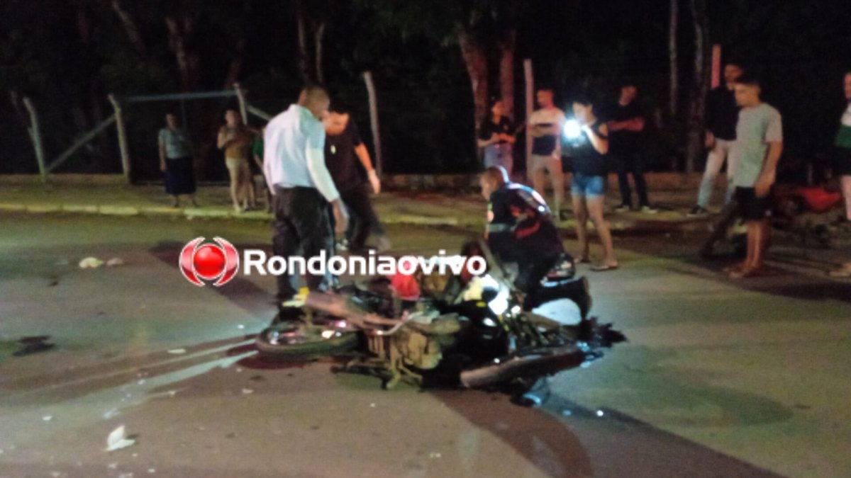 O motorista de um carro modelo Pálio tentou fugir após atropelar duas pessoas em uma motocicleta Honda Fan no final da noite desta terça-feira (12) na Estrada dos Periquitos, próximo a BR-364, em Porto Velho (RO).
