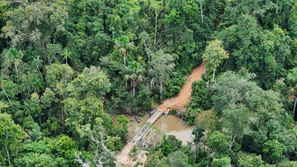 Invasores que reitiram madeira da Terra Indígena Karipuna construíram ponte dentro da área - Foto: Survival Brasil
