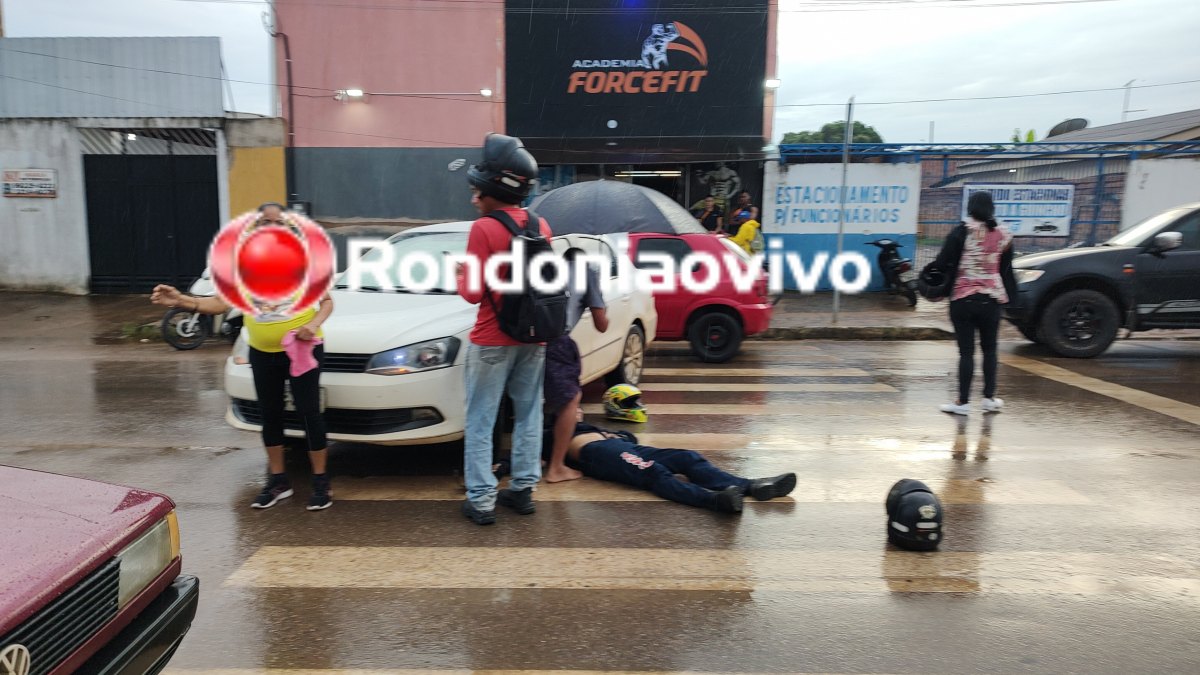 Com a violência da batida, o motociclista chegou a ficar convulsionando no local