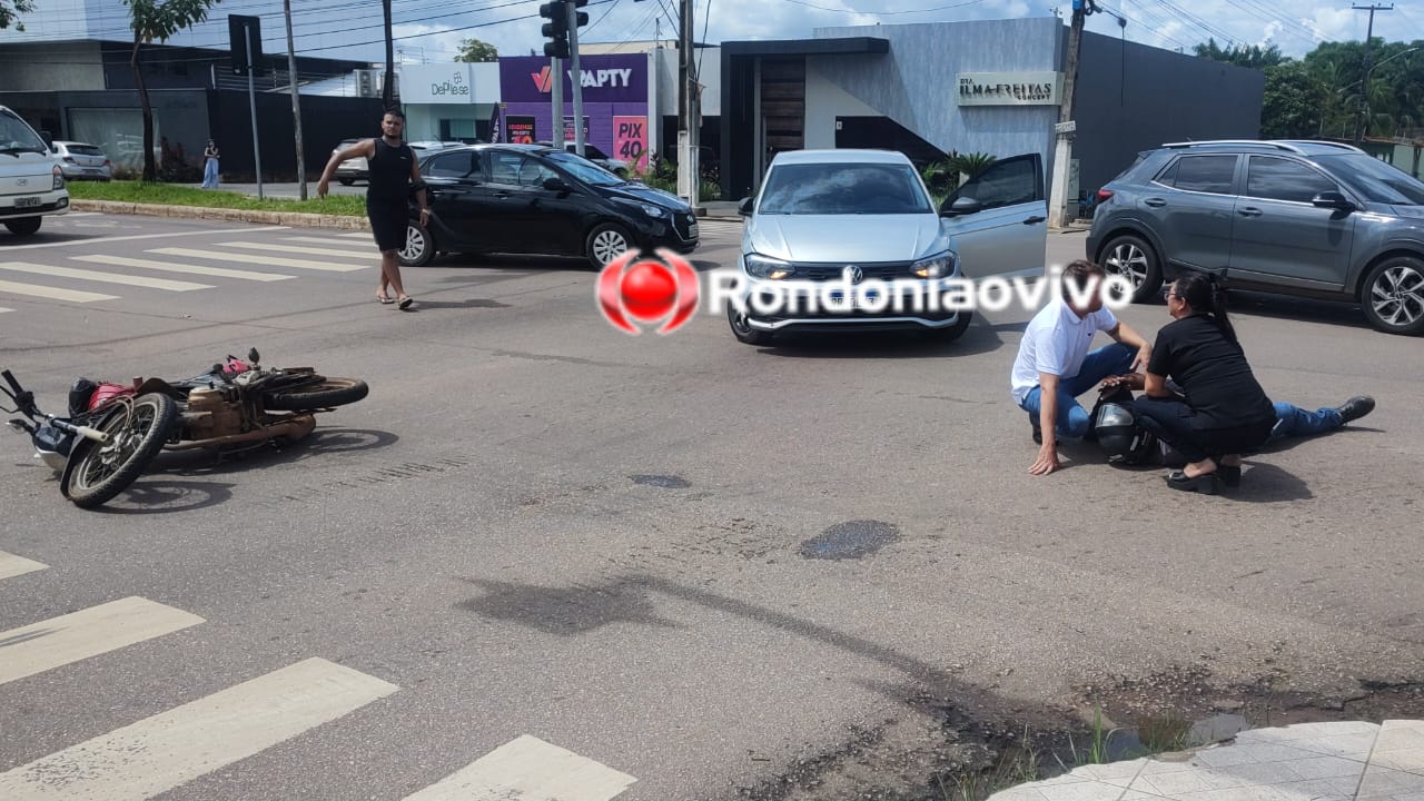 Na região Central de Porto Velho, um outro motociclista ficou ferido em batida contra carro na Avenida Carlos Gomes com Elias Gorayeb