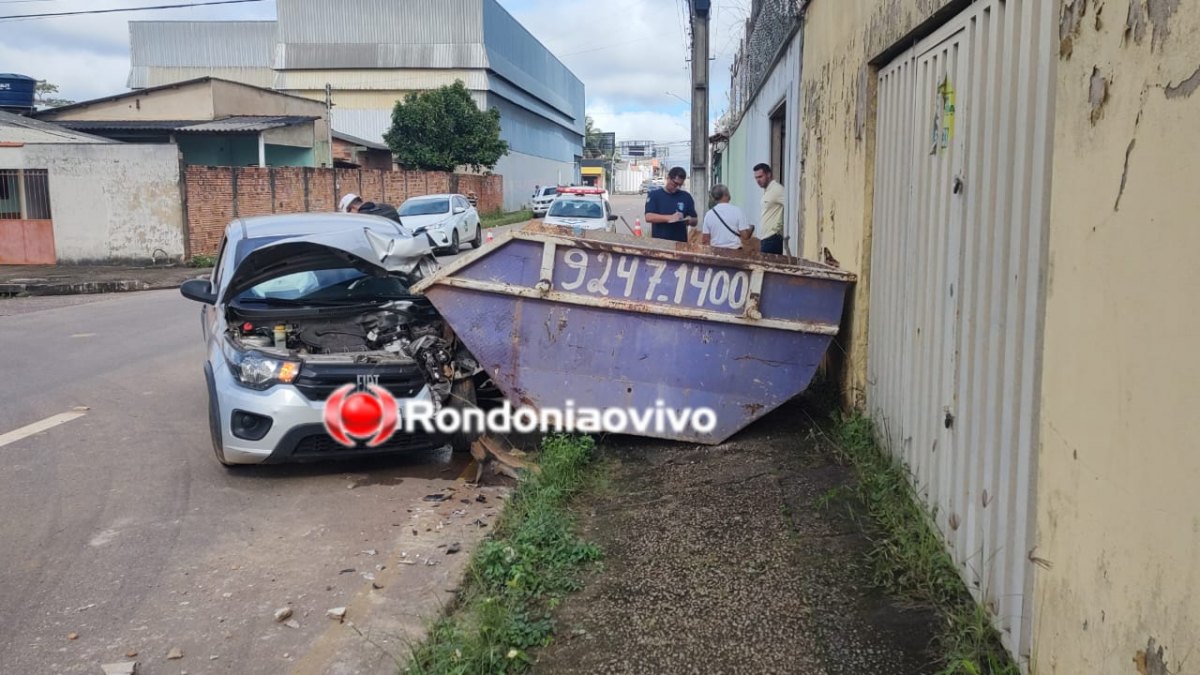 Nisso, o automóvel bateu violentamente na caçamba de entulhos. O motorista de 23 anos foi levado para uma unidade médica com lesões consideradas leves.
