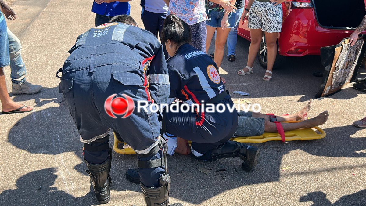 O motorista de um carro de aplicativo avançou a preferencial e deixou um motociclista gravemente ferido na tarde desta quinta-feira (13) na Rua Alba com Marineide, bairro Cuniã, na zona Leste de Porto Velho (RO).