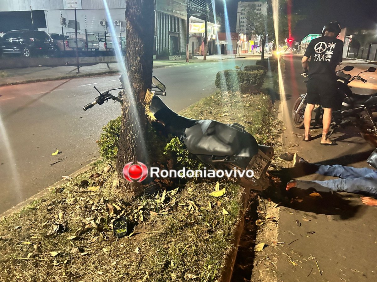 Um motociclista de 39 anos ficou desacordado após colidir contra uma árvore no canteiro central. O Rondoniaovivo apurou que o homem em alta velocidade seguia na Rio de Janeiro sentido centro/bairro, quando perdeu o controle da direção e se chocou fortemente contra a árvore.