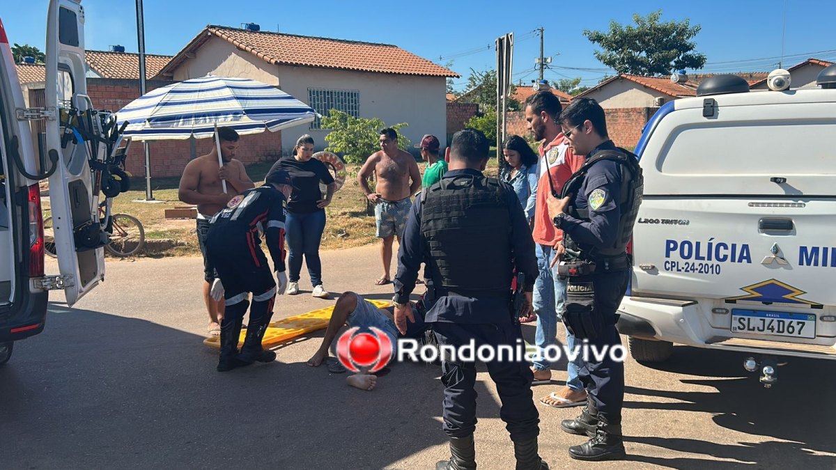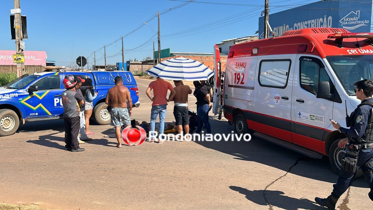 Um motociclista de 23 anos foi socorrido às pressas pelo SAMU após grave acidente na manhã desta terça-feira (18) na Rua Araguaína com Avenida Calama, residencial Cristal da Calama, zona Leste da capital de Rondônia.