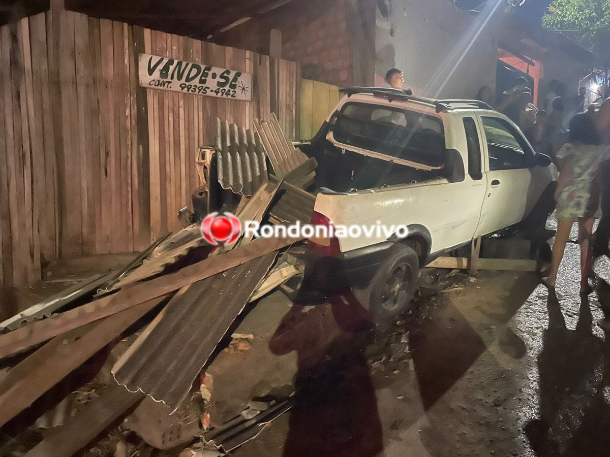A Polícia Militar foi acionada para o local. O carro também atingiu e derrubou a cobertura da área de uma casa.