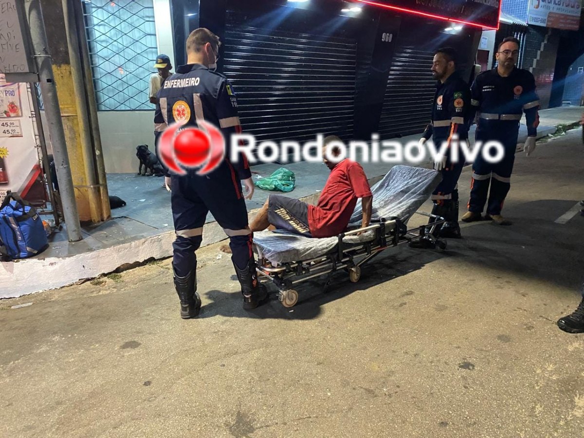 Um homem em situação de rua, Jailson C. da S., 38, foi agredido a facada. Policiais militares e uma equipe do SAMU foram chamados para o local.