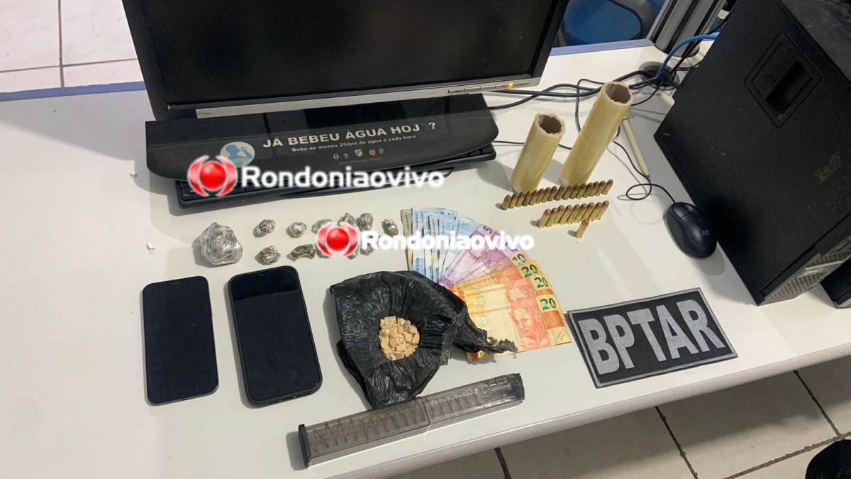 Militares apreenderam ainda porções de maconha, 26 munições de calibre 38 e 9mm, além de materiais usados para embalar droga e dois celulares iPhones