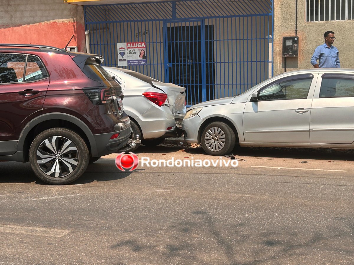 Um veículo modelo T-Cross dirigido por um médico tombou após colisão envolvendo três carros. O Rondoniaovivo colheu informações no local de que o médico transitava na Pinheiro Machado no momento em que bateu na traseira de um carro Voyage que estava estacionado.