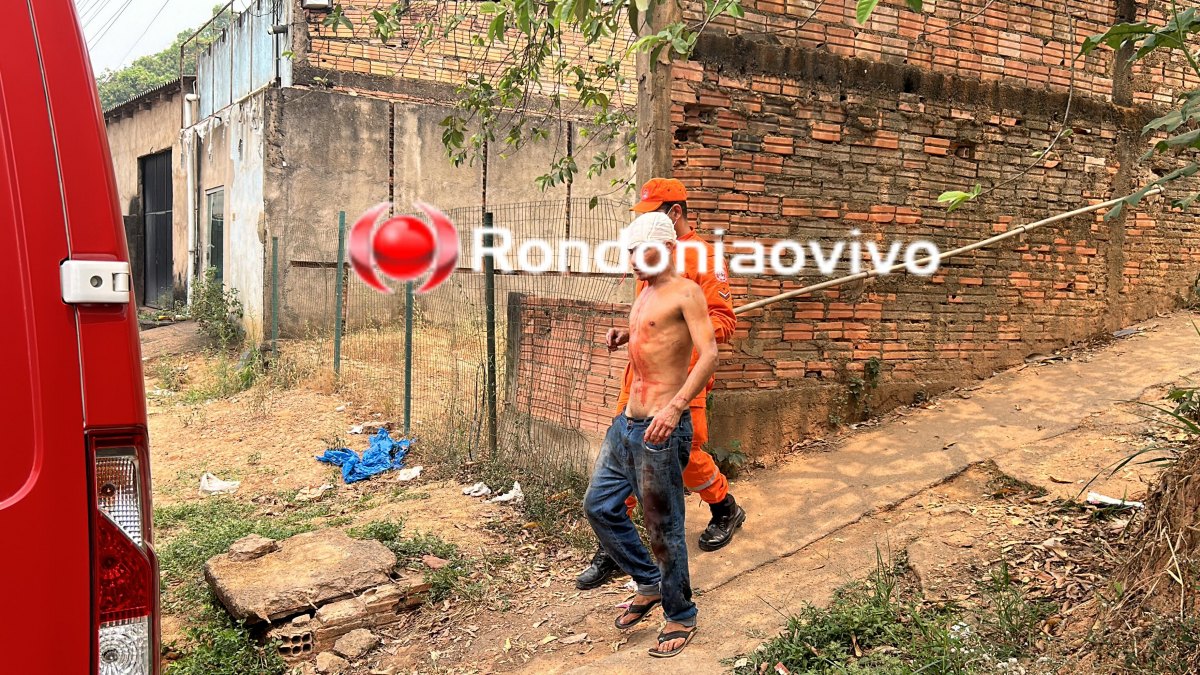 O homem bastante ensanguentado foi socorrido por uma equipe do Corpo de Bombeiros.