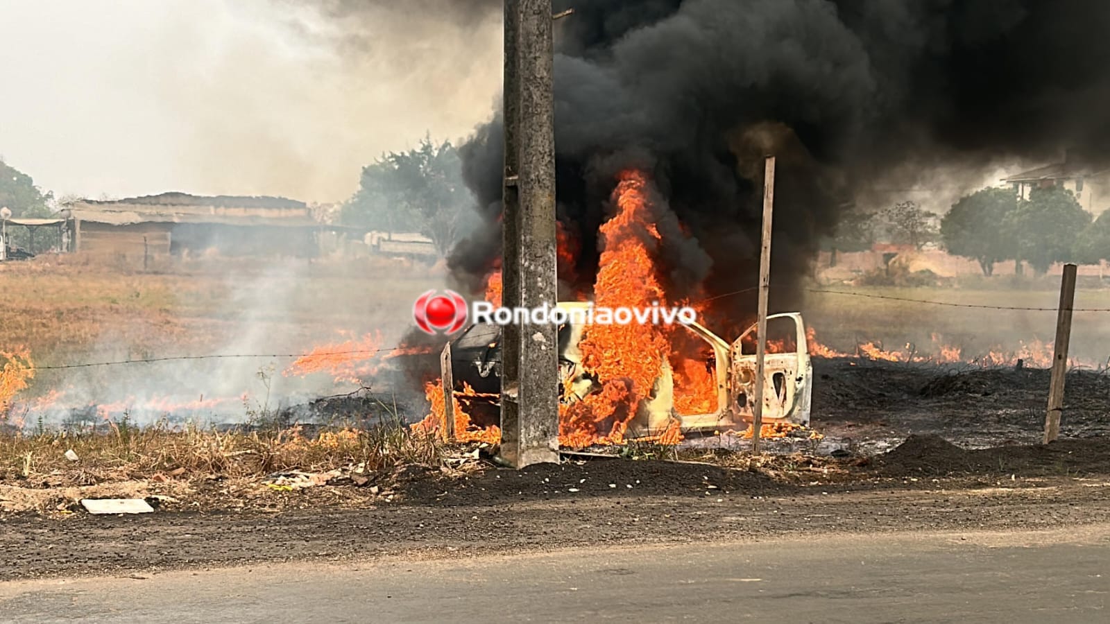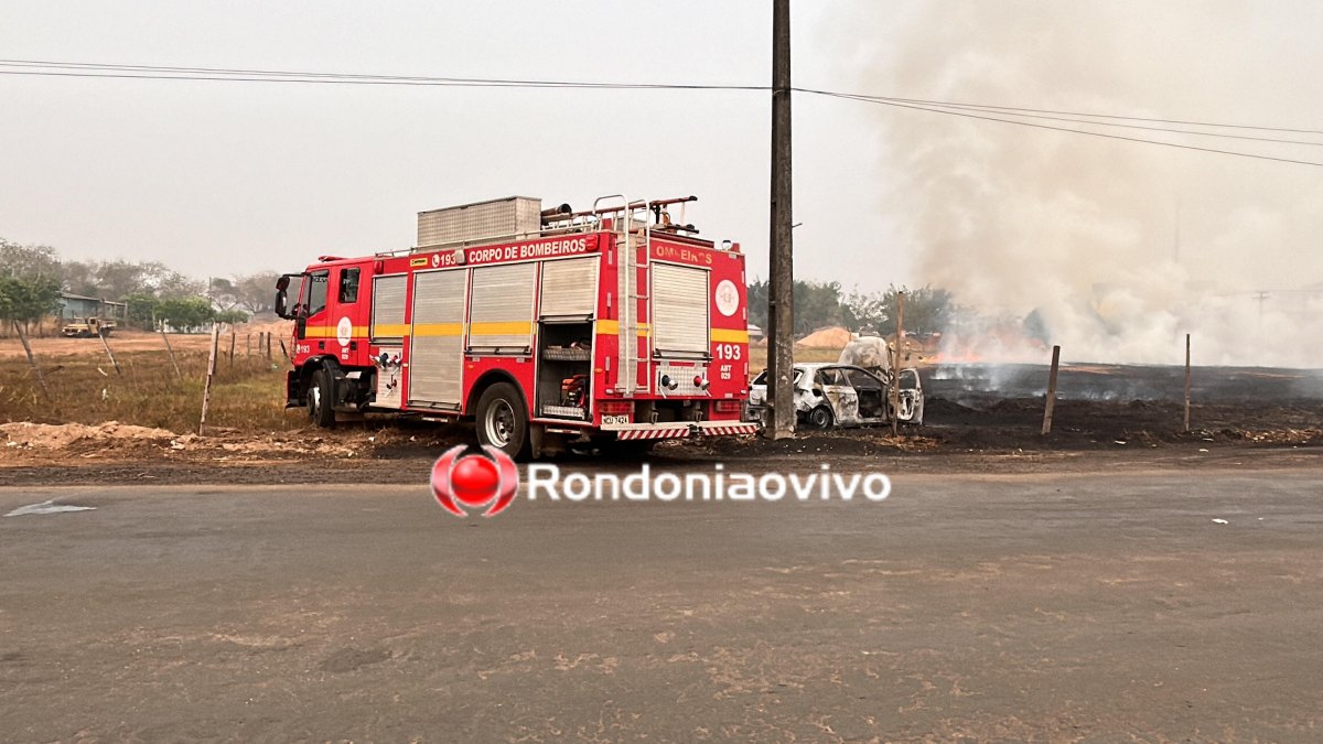 No entanto, o carro foi completamente destruído. O fogo também passou para a vegetação ao redor onde estava o veículo.