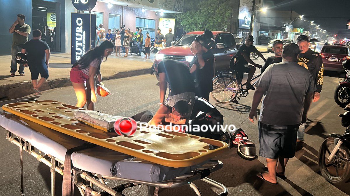 Um casal ficou ferido após acidente envolvendo moto e carro na noite deste sábado (05) na Avenida Rio de Janeiro, bairro Tancredo Neves, zona Leste de Porto Velho (RO).
