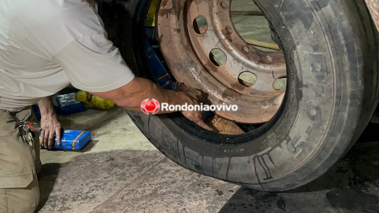 A grande quantidade de entorpecentes foi localizada escondida nos pneus de um caminhão baú de mudanças. O veículo tinha saído da fronteira com a Bolívia, região de Guajará-Mirim.