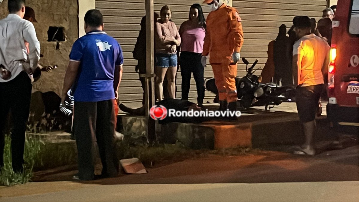 Imagens de câmera de monitoramento registraram o grave acidente que deixou um casal de motocicleta ferido após atropelar um cachorro e sofrer queda na noite desta terça-feira (26) na rua Cabo Verde, bairro Três Marias, zona Leste de Porto Velho (RO).