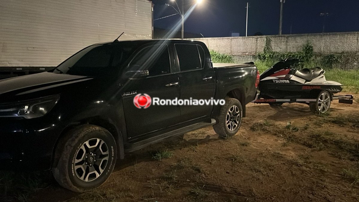 Na casa de Everlan, localizada no beco Canaã, bairro Conceição, foram apreendidas uma pistola calibre 380, a quantia de R$ 7 mil, uma caminhonete modelo Hilux de cor preta e um jet ski.