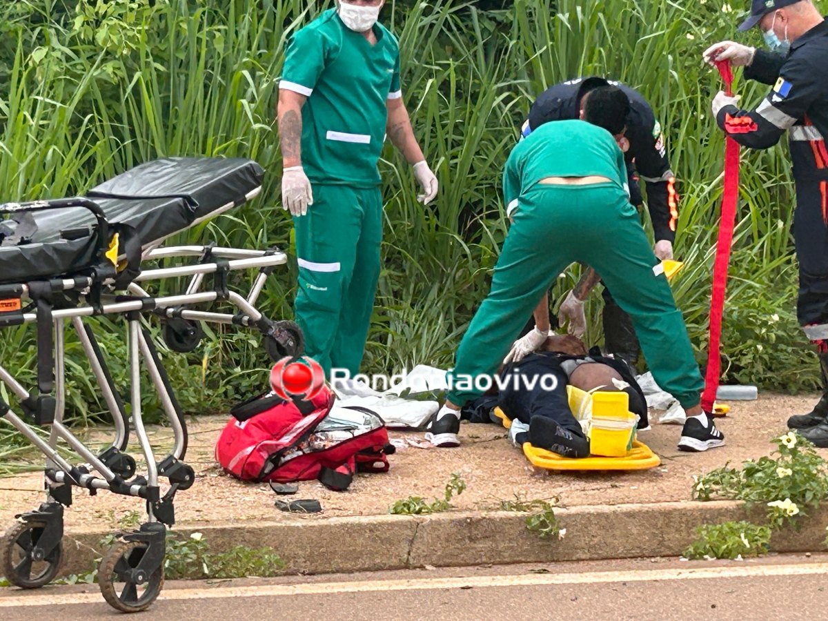 Um motociclista de 40 anos foi socorrido com politrauma após sofrer grave queda na Rua da Beira, próximo a Avenida Campos Sales, em frente ao viaduto, em Porto Velho (RO) nesta manhã de sexta-feira (06).