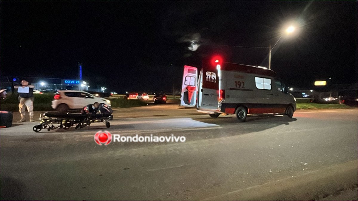 O piloto da moto acabou colidindo na traseira do carro. No acidente, a vítima sofreu ferimentos pelo corpo e foi socorrida por uma equipe do SAMU para a UPA.