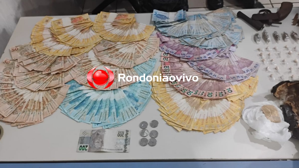 Com a chegada dos policiais, "Calango" foi flagrado com várias porções de crack, maconha, uma arma de fabricação caseira e várias munições de calibre 38, 9mm e 357, além de aproximadamente R$ 14 mil em dinheiro e materiais usados no tráfico.