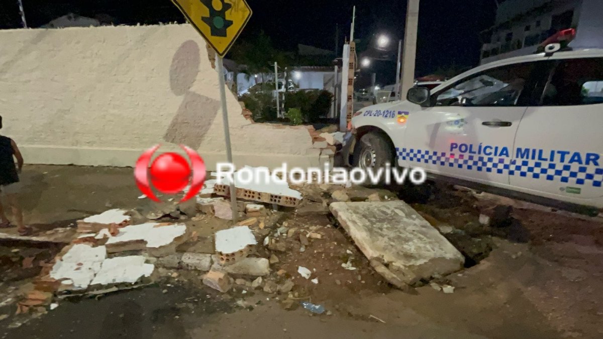 Uma viatura da Polícia Militar derrubou parte do muro de uma residência na noite desta quinta-feira (01) na Avenida Guaporé com Rua César Guerra Peixe, bairro Igarapé, na capital de Rondônia.