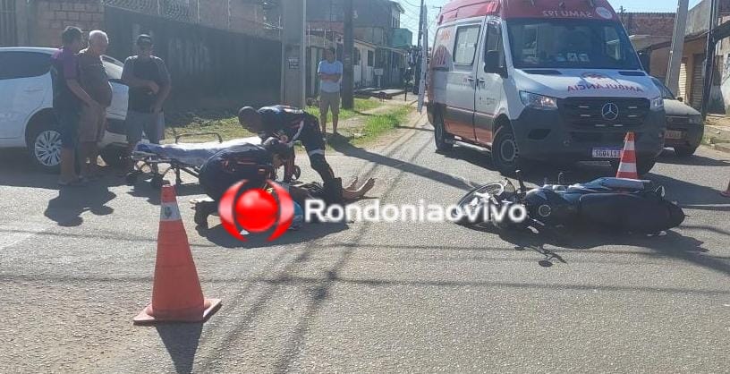 Com o forte impacto entre os veículos, o motociclista ficou bastante ferido e foi socorrido às pressas por uma equipe do SAMU.