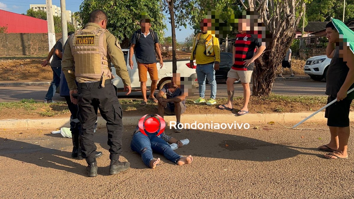 Com a violência do impacto, o casal foi parar a distância junto com a moto