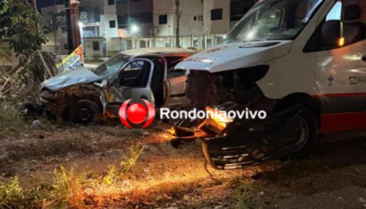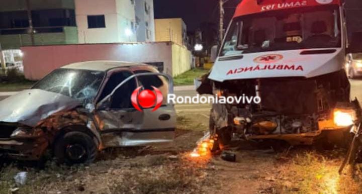 A ambulância do SAMU estava seguindo na Avenida Pinheiro Machado e o motorista de um carro modelo Celta teria avançado o semáforo pela Avenida Guaporé sentido Calama.