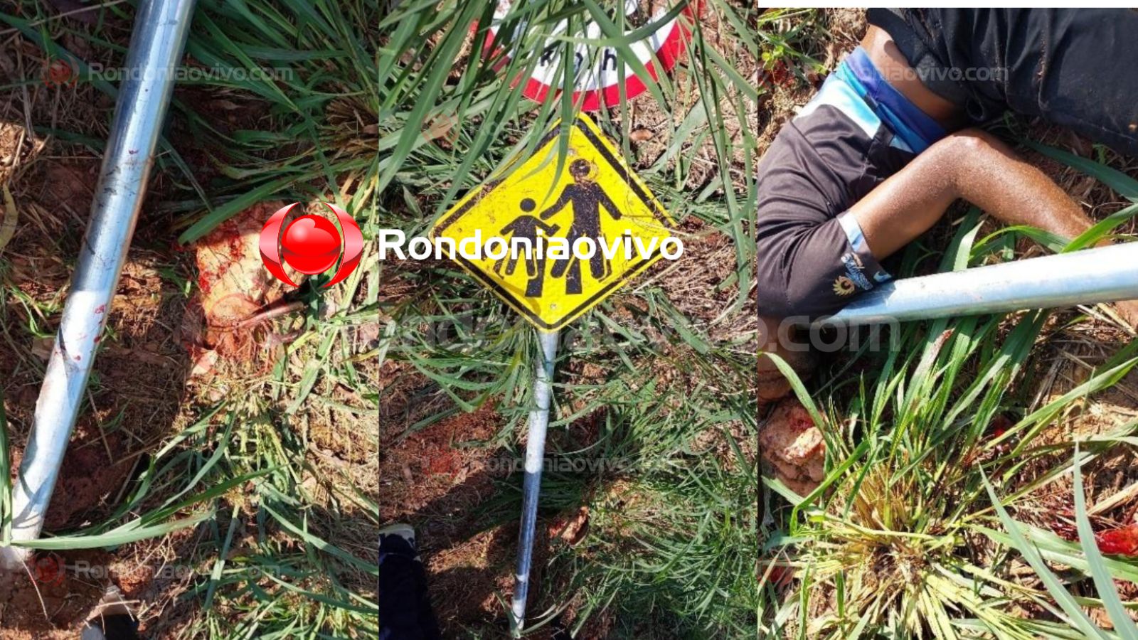 A vítima acabou arrancando uma placa de sinalização e ao cair ainda bateu a cabeça em uma pedra.