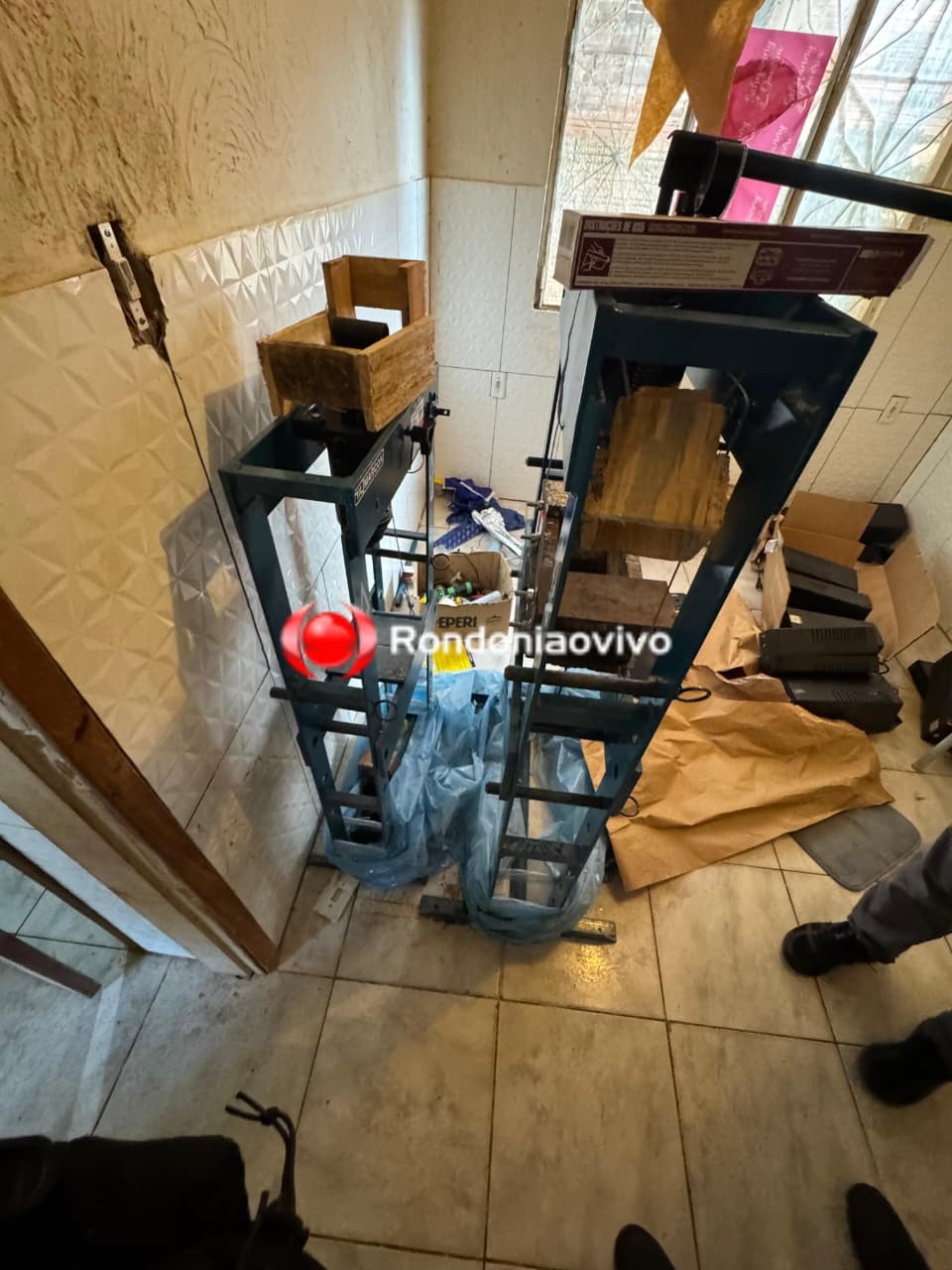 Duas prensas usadas no acondicionamento das drogas e outros materiais foram apreendidos