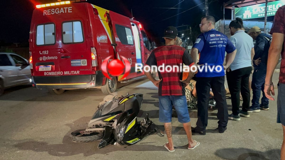 URGENTE: Mulher em moto fica desacordada e motorista foge após causar acidente