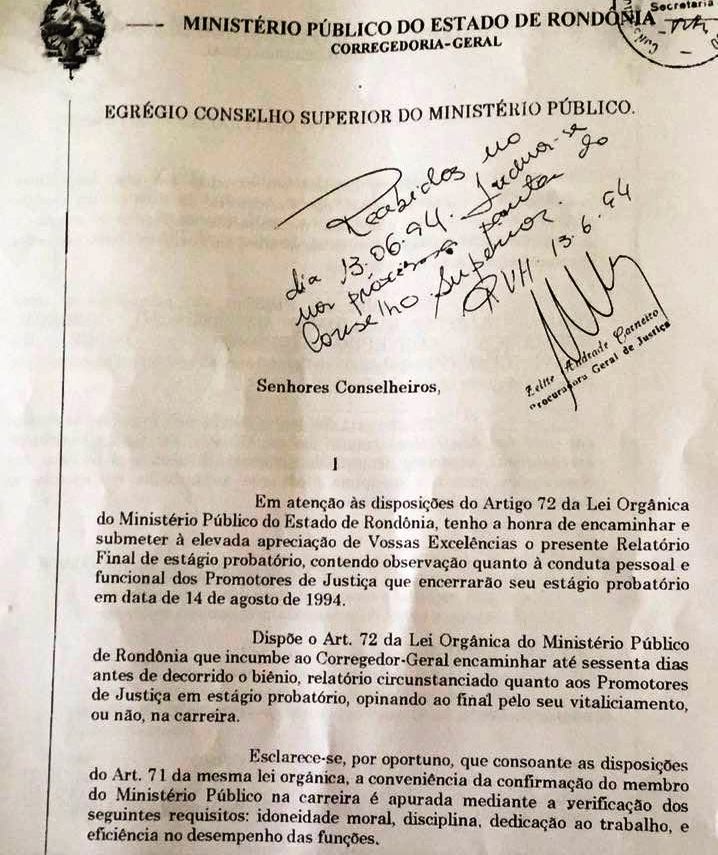 O monitoramento dos sete promotores que passaram no concurso de 1992 foi realizado em cumprimento ao artigo 72 de Lei Orgânica do Ministério Público de Rondônia, em consonância com o art 71, onde durante dois anos é analisada a conduta pessoal e funcional dos promotores. Também são avaliados os seguintes requisitos – Idoneidade moral, disciplina, dedicação ao trabalho e eficiência no desempenho na função do ‘parquet’. Os relatórios são trimestrais.