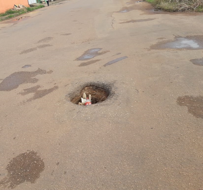 Moradores do bairro Aponia mandaram fotos para a coluna de uma dezena de bueiros abertos na rua Andreia. Separamos dois onde segundo a população carros, pessoas e motos já caíram. O empresário José Barbosa, conhecido por Bira, disse que teve uma época que chegou a comprar cones para sinalizar os locais mas os sinalizadores acabaram sendo roubados. Os moradores da região afirmam que o problema já dura um ano. Eles dizem ainda que já perderam a conta do número de ligações para a prefeitura relatando o problema. Com a palavra o poder público.