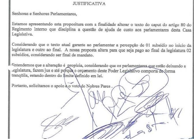 Na Justificativa para a mudança do artigo 80, do Regimento Interno, afirma que “o orçamento do Poder Legislativo comporta de forma tranquila, estando dentro do limite definido em lei” dos dois novos salários dos parlamentares. Pode ser dentro da lei, mas não é ético, em especial, em um momento de transição de governos em que a maior parte dos estados estão com as contas no vermelho.
