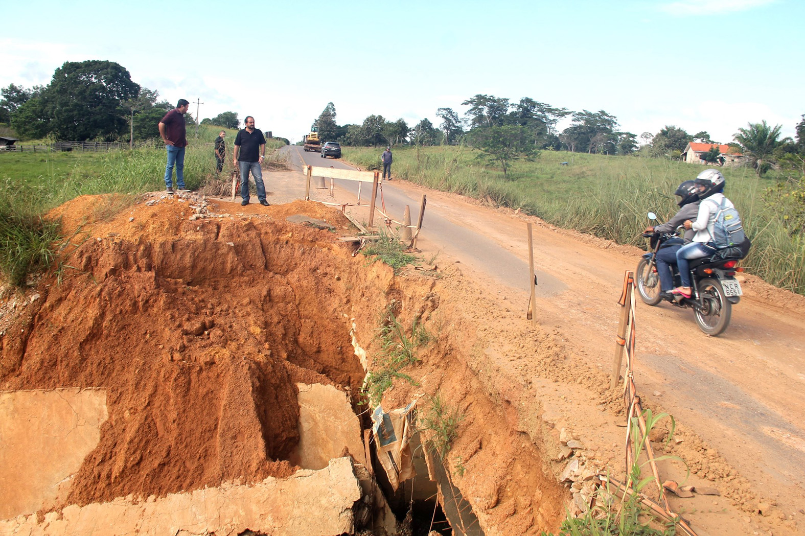 O presidente da Assembleia, Laerte Gomes (PSDB) vistoriou no final de semana a RO-473 e verificou in loco o trecho onde metade da pista foi destruída com a queda da estrutura de um bueiro há quase dois meses.