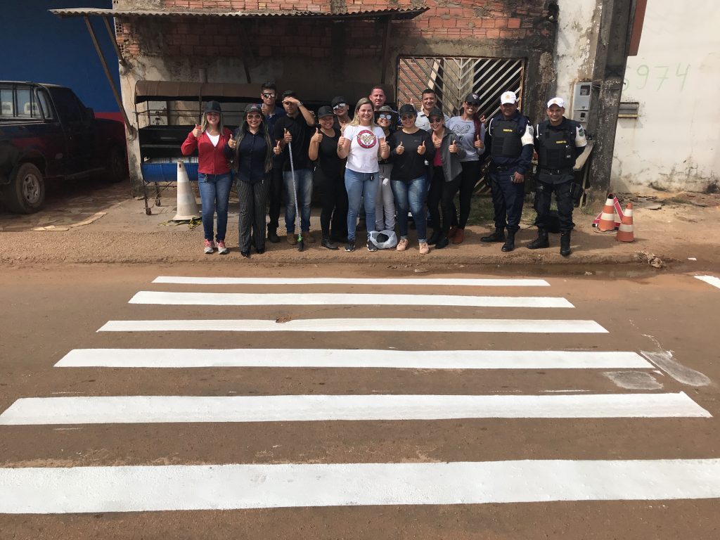 A primeira escola a receber a pintura de faixa foi a Escola Municipal de Ensino Infantil e Fundamental Padre Geovani Mendes, localizada na Rua Benedito Inocêncio, Bairro Três Marias, área leste da capital. Por ser uma das vias que liga a Avenida Guaporé à Avenida Mamoré, milhares de veículos passam diariamente em frente ao colégio e, sem a faixa de pedestres, as crianças precisam aguardar muito tempo para poderem atravessar a rua e, mesmo assim, correm risco de serem atropeladas.